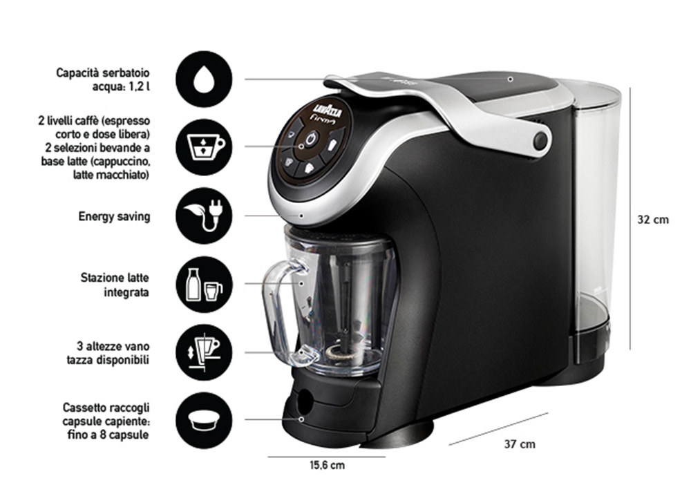 - Funzionamento esclusivo con capsule monodose Lavazza FIRMA